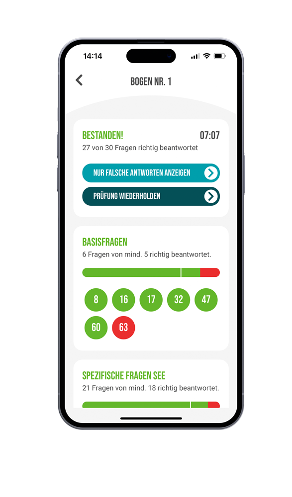 Als Inhaber bestimmter Führerscheine oder Funkzeugnisse reduziert sich bei Folgeprüfungen ggf. der Umfang des Fragenkatalogs. Das was nicht geprüft wird, muss auch nicht gelernt werden. Die App erstellt einen indivi­duali­sierten Fragenkatalog.